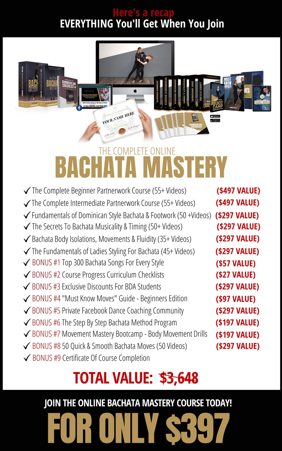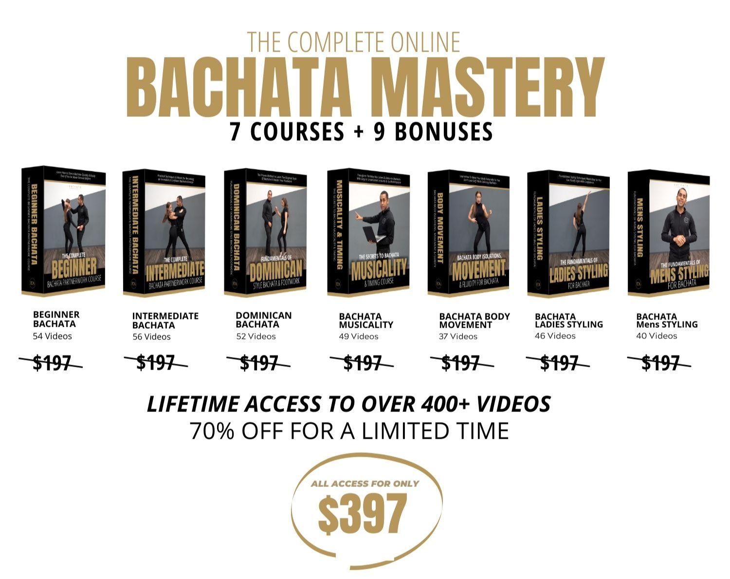 "The Complete Online Bachata Mastery" has more tutorials than any other online course!