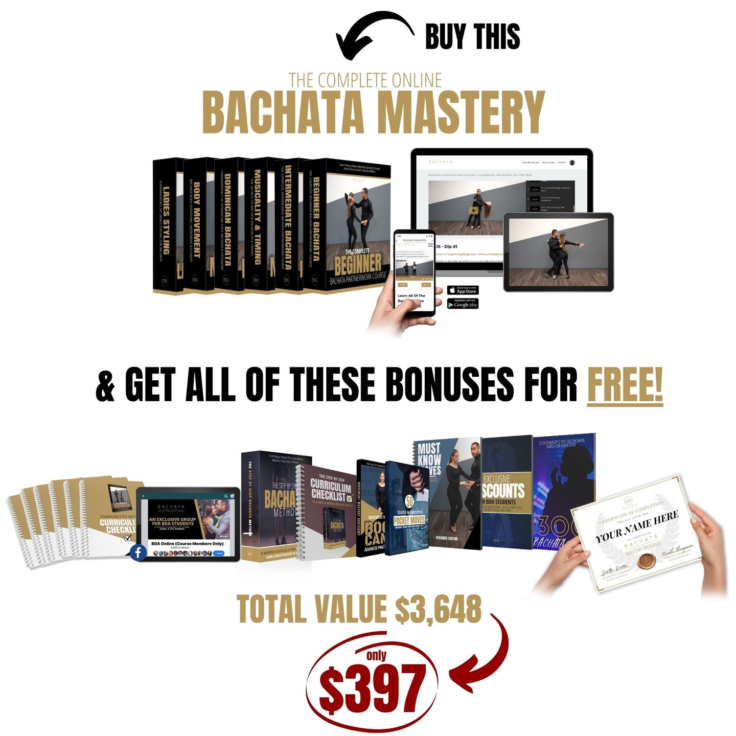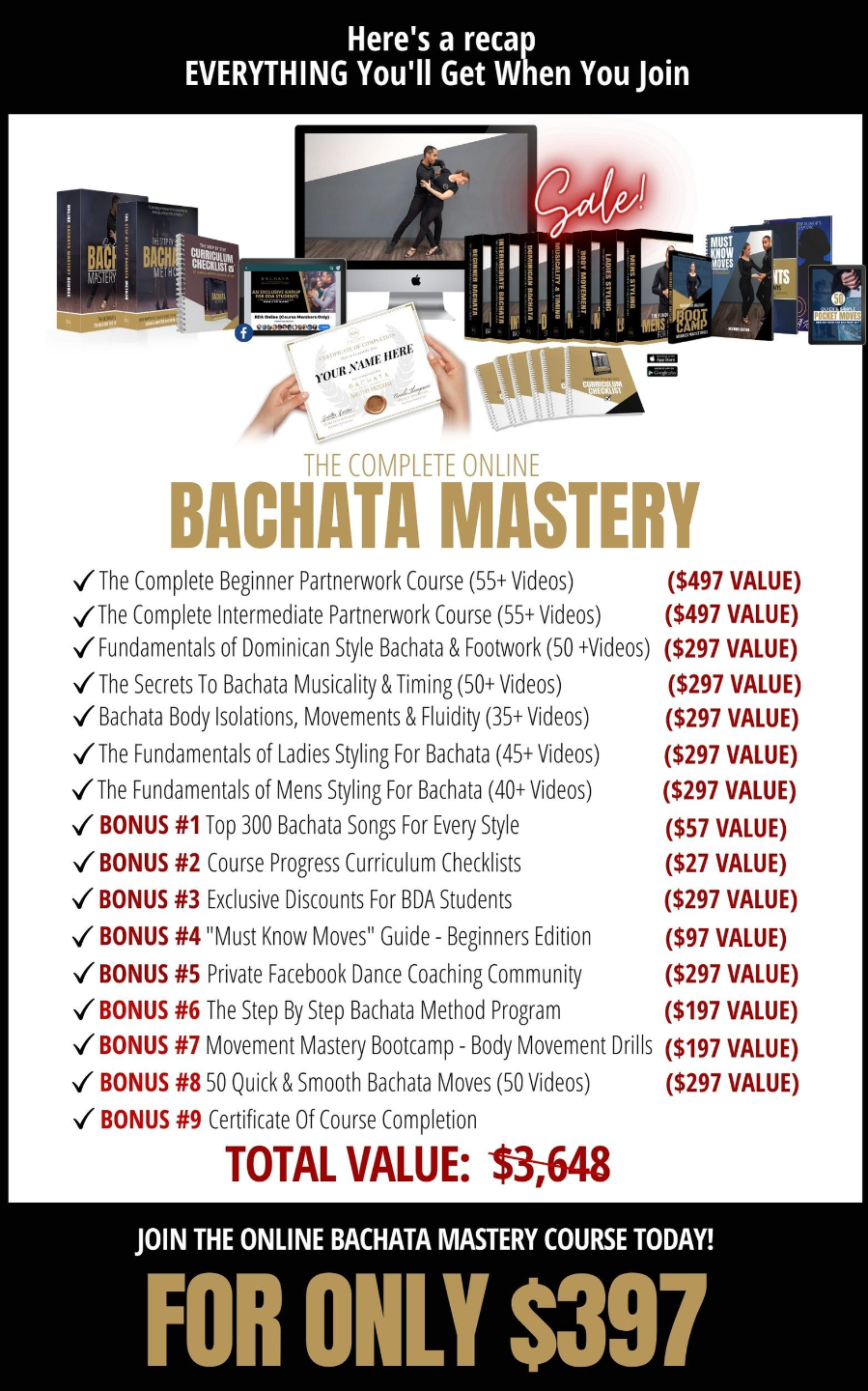 ➡ Connect with the right people on our private Facebook community so you can join the Bachata family, get to know fellow students, and ask the instructors questions anytime you need help...